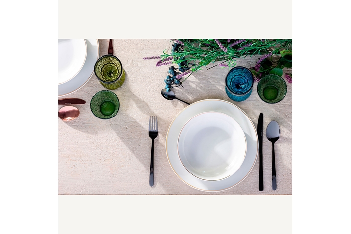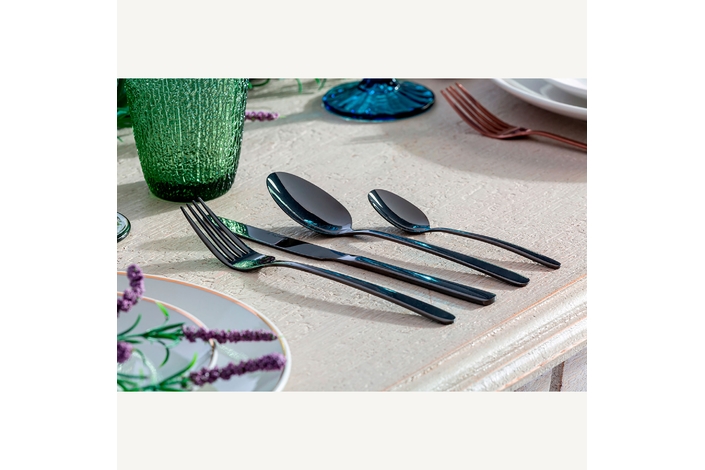 Cubiertos j/24, en color plata, de estilo contemporáneo. Fabricado en acero.