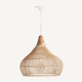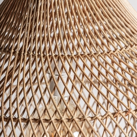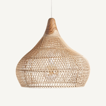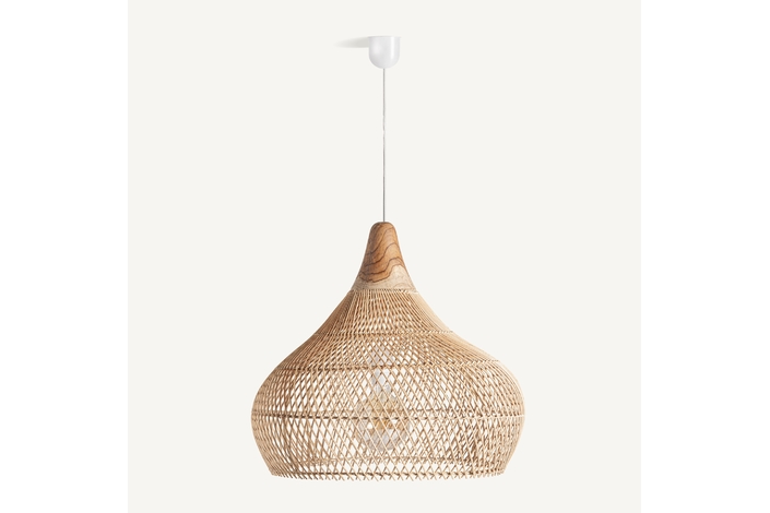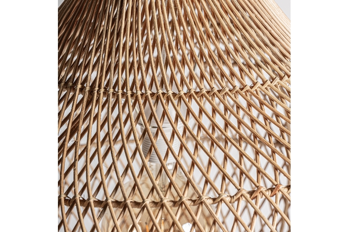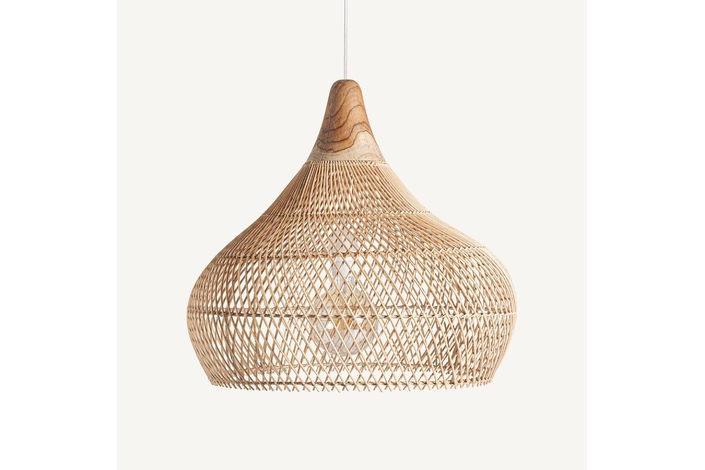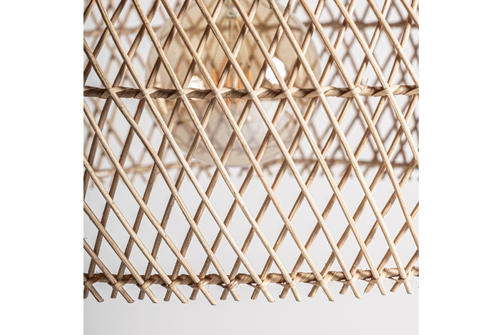 Lámpara de colgar, en color marrón, de estilo boho. Fabricado en ratán.