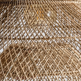 Lámpara de colgar, en color marrón, de estilo contemporáneo. Fabricado en ratán.