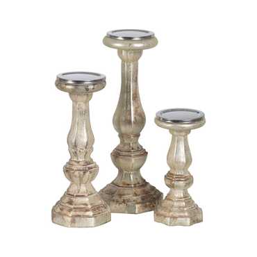 PORTAVELAS BLANCO ÓXIDO CRISTAL 15 X 15 X 38 CM