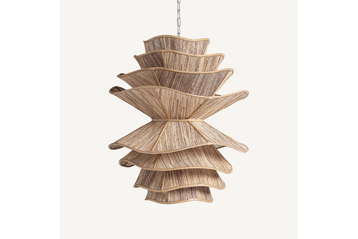 Lámpara de colgar, en color marrón, de estilo boho. Fabricado en madera de coco.