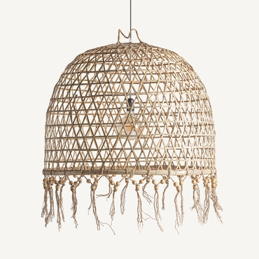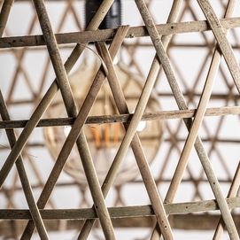 Lámpara de colgar, en color marrón. Fabricado en bambú, combinado con metal.
