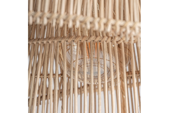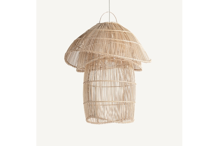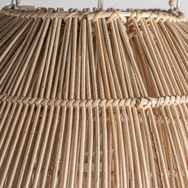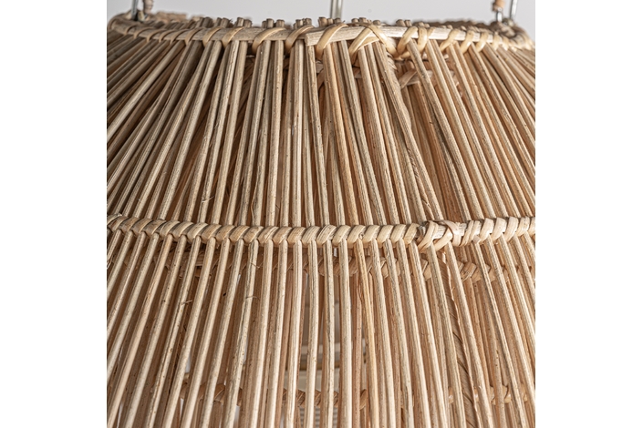 Lámpara de colgar, en color marrón, de estilo boho. Fabricado en ratán.