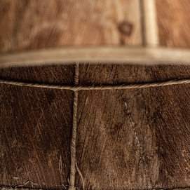 Lámpara de colgar, en color marrón, de estilo boho. Fabricado en madera de coco.
