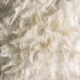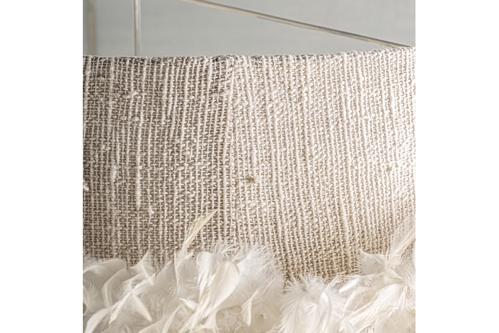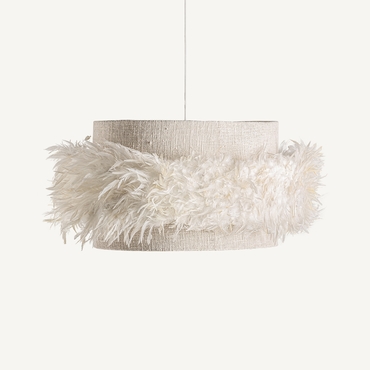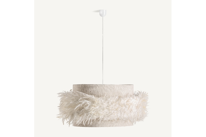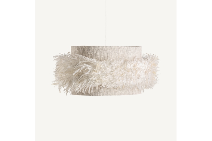Lámpara de colgar, en color marrón, de estilo étnico. Fabricado en plumas, combinado con yute.