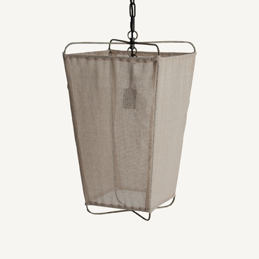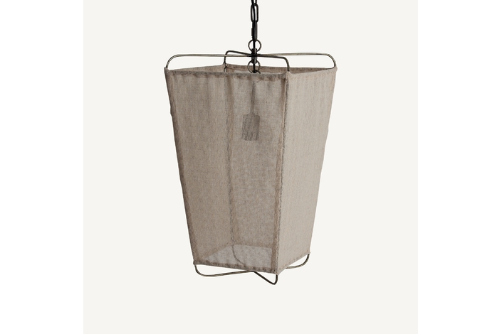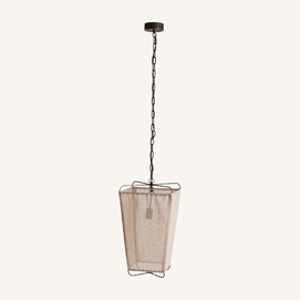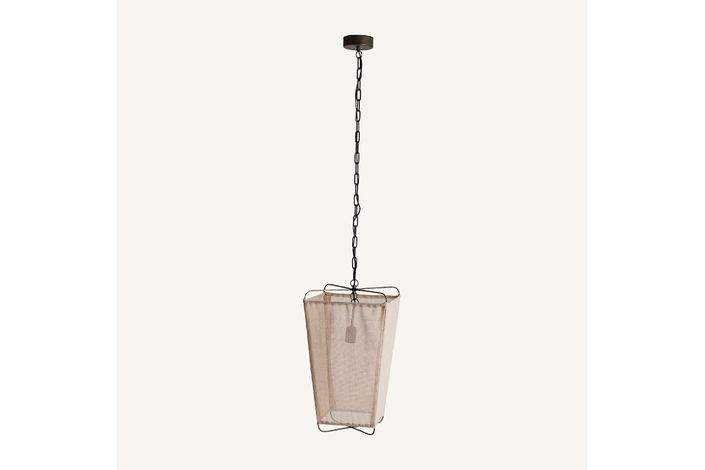 Lámpara de colgar, en color marrón, de estilo contemporáneo. Fabricado en hierro, combinado con lino.