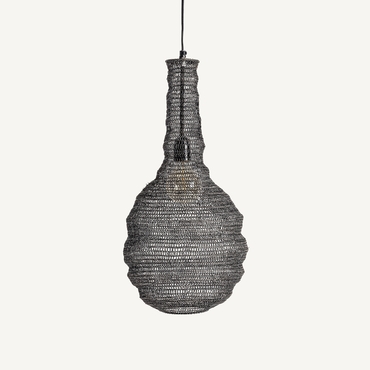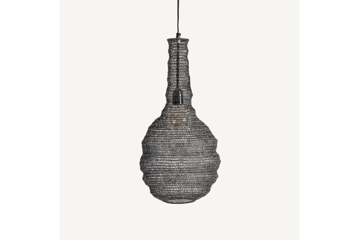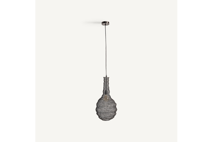 Lámpara de colgar, en color gris, de estilo industrial. Fabricado en hierro.
