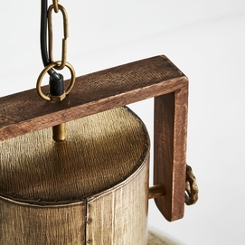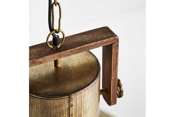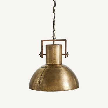 Lámpara de colgar, en color oro, de estilo art deco. Fabricado en hierro.