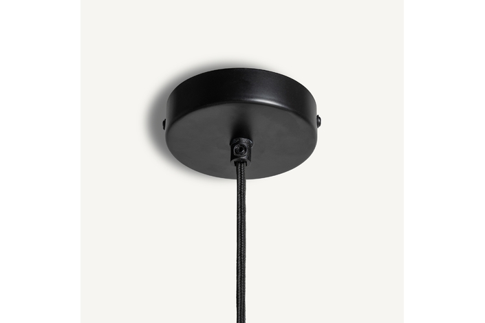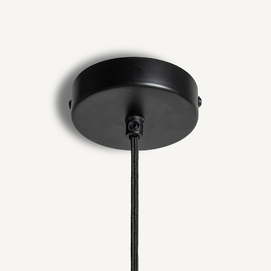 Lámpara de colgar, en color negro/oro, de estilo art deco. Fabricado en hierro.