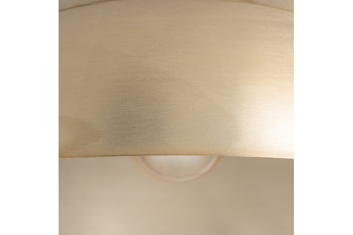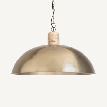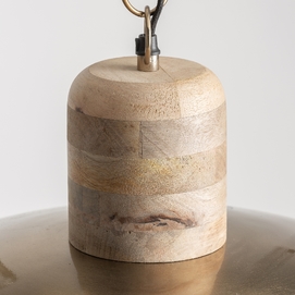 Lámpara de colgar, en color oro, de estilo art deco. Fabricado en hierro, combinado con madera de mango.