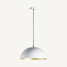 Lámpara de colgar, en color blanco/oro, de estilo art deco. Fabricado en hierro. Producto extensible.