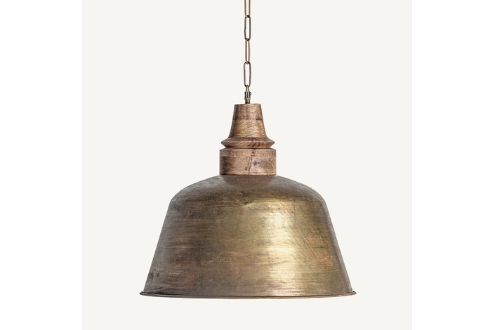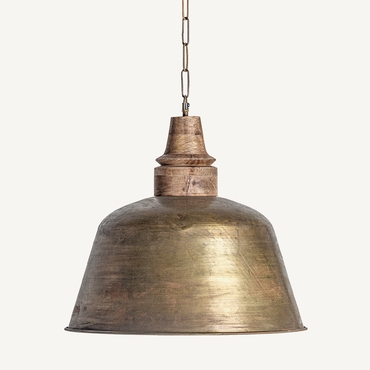 Lámpara de colgar, en color oro viejo, de estilo industrial. Fabricado en hierro.