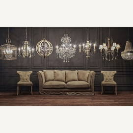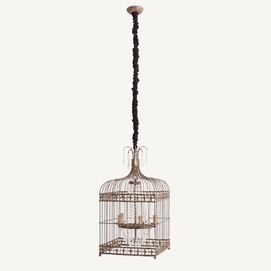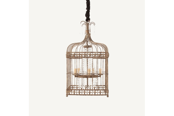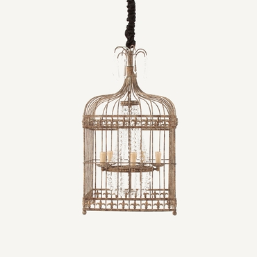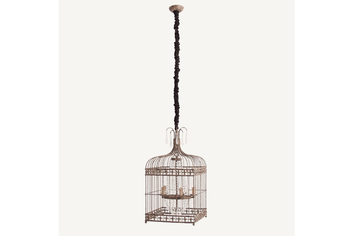Lámpara de colgar, en color oro viejo, de estilo provenzal. Fabricado en hierro, combinado con vidrio. Producto desmontable.