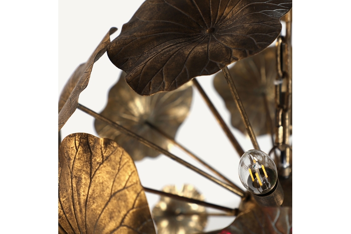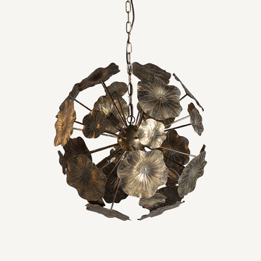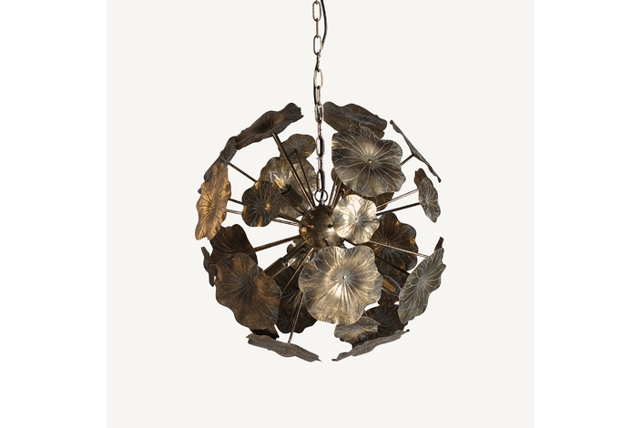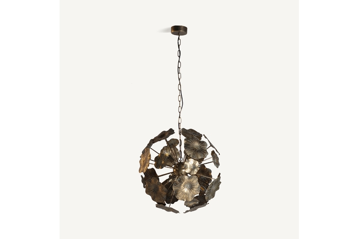 Lámpara de colgar, en color oro viejo, de estilo provenzal. Fabricado en hierro. Producto desmontable.