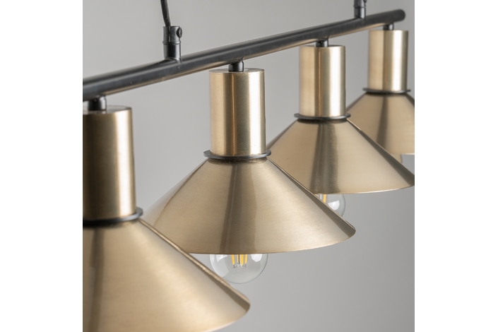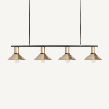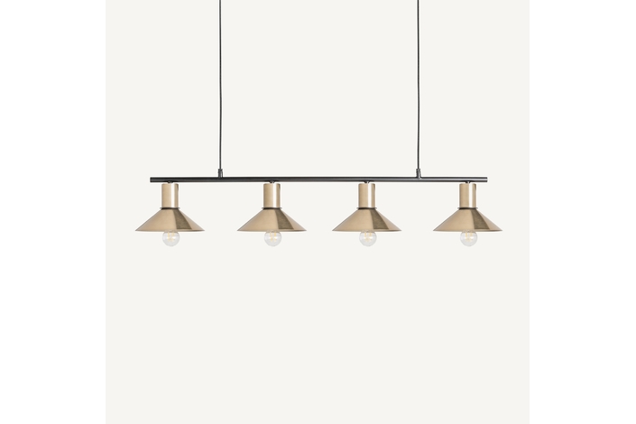 Lámpara de colgar, en color oro, de estilo art deco. Fabricado en hierro.