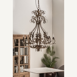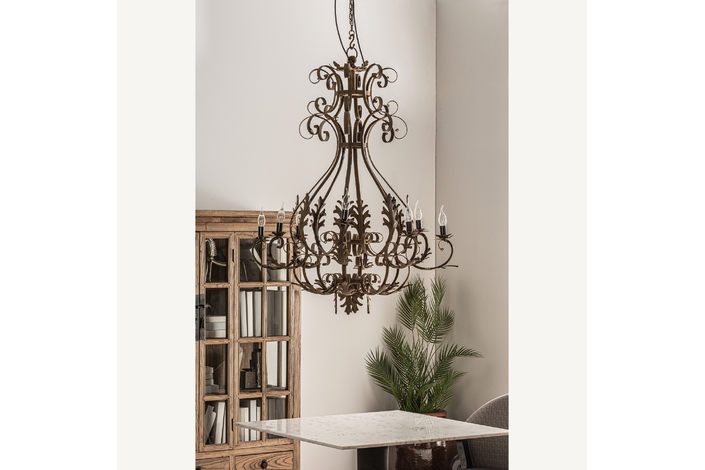 Lámpara de colgar, en color oro viejo, de estilo provenzal. Fabricado en hierro.