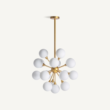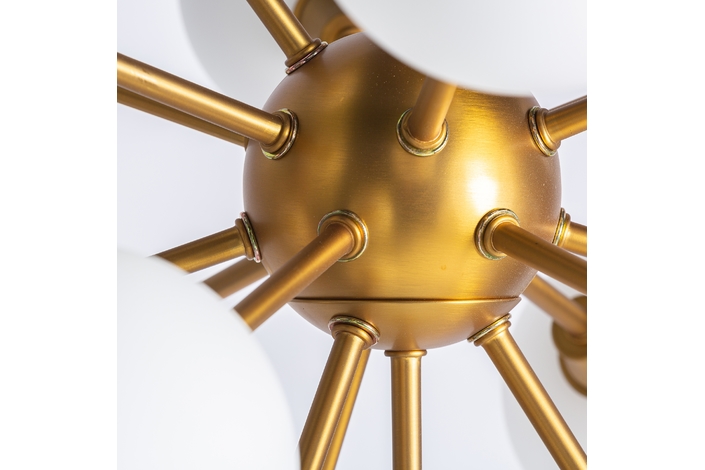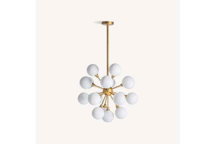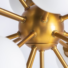 Lámpara de colgar, en color oro, de estilo art deco. Fabricado en latón, combinado con cristal. Producto desmontable. Compatible con: 27756.