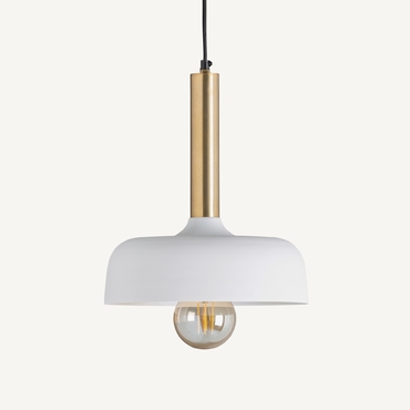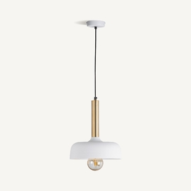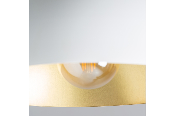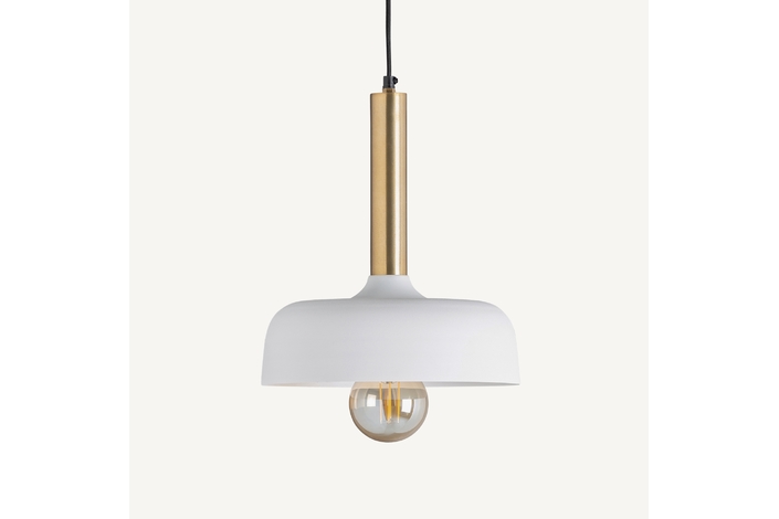 Lámpara de colgar, en color blanco/oro, de estilo art deco. Fabricado en hierro. Producto extensible.