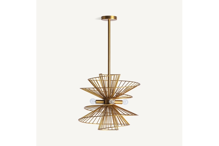 Lámpara de colgar stowe, en color oro, de estilo art deco. Fabricado en hierro. Producto desmontable.