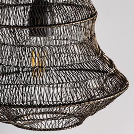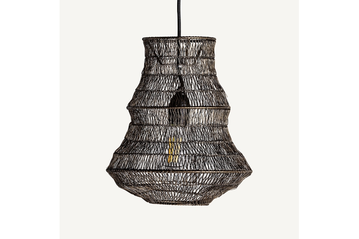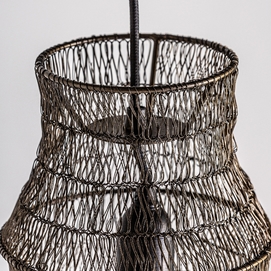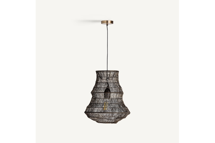 Lámpara de colgar, en color negra artesanal, de estilo contemporáneo. Fabricado en hierro. Producto plegable.