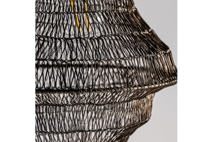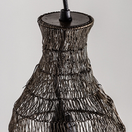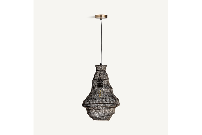 Lámpara de colgar, en color negra artesanal, de estilo contemporáneo. Fabricado en hierro. Producto plegable.