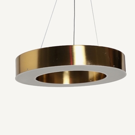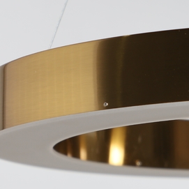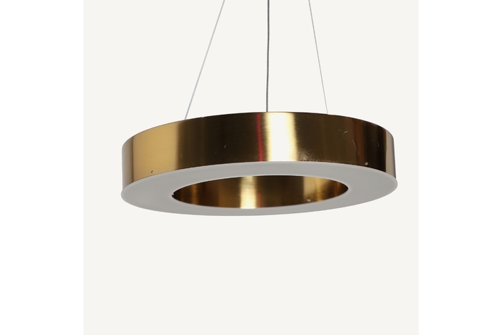 Lámpara de colgar, en color oro, de estilo art deco. Fabricado en hierro. Producto extensible.