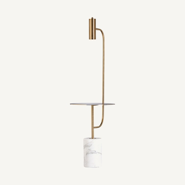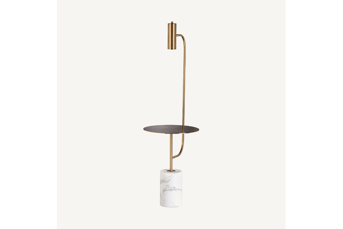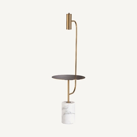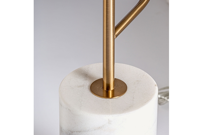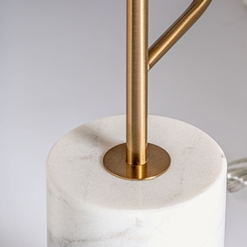 Lámpara de pie, en color blanco/oro, de estilo art deco. Fabricado en hierro, combinado con mármol. Producto desmontable.