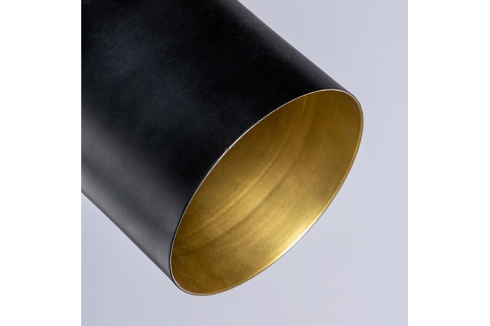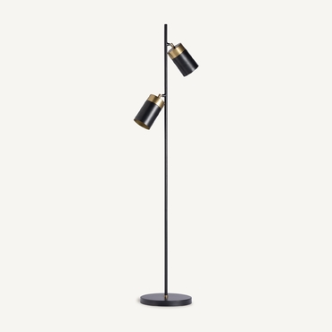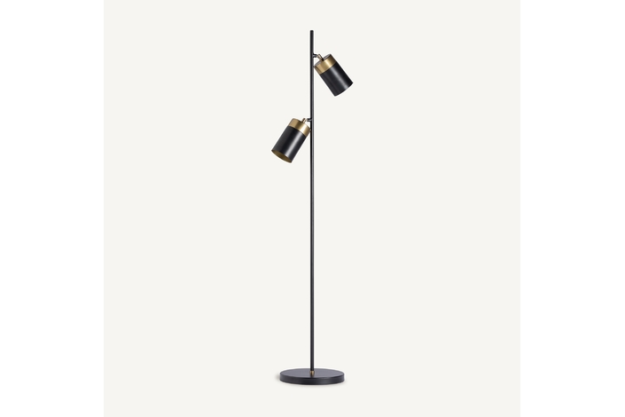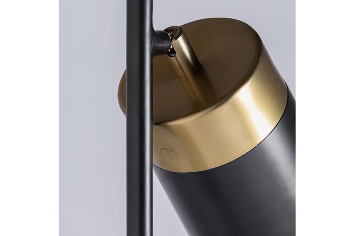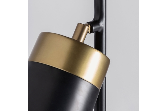 Lámpara de pie, en color oro/negro, de estilo art deco. Fabricado en hierro, combinado con latón.