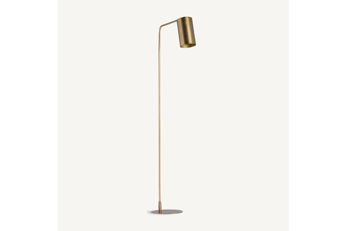 Lámpara de pie, en color oro, de estilo art deco. Fabricado en hierro, combinado con latón.