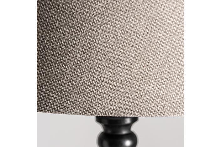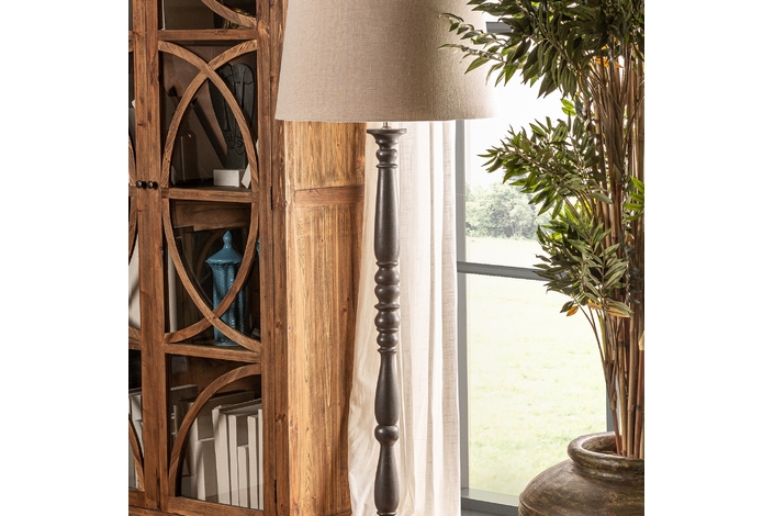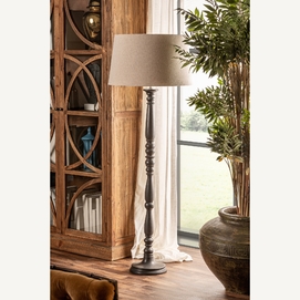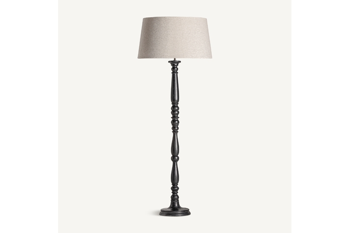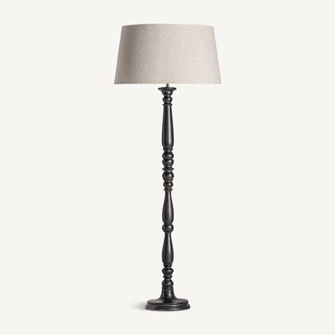 Lámpara de pie, en color negra, de estilo provenzal. Fabricado en madera de mango, combinado con algodón.