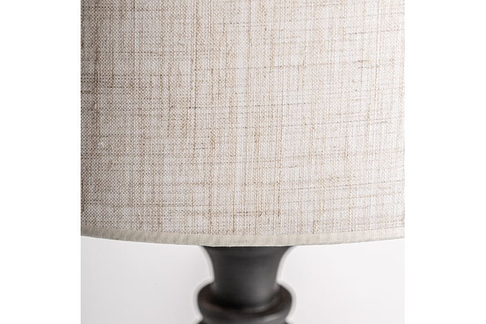 Lámpara de sobremesa. Fabricado en terracota, combinado con lino.