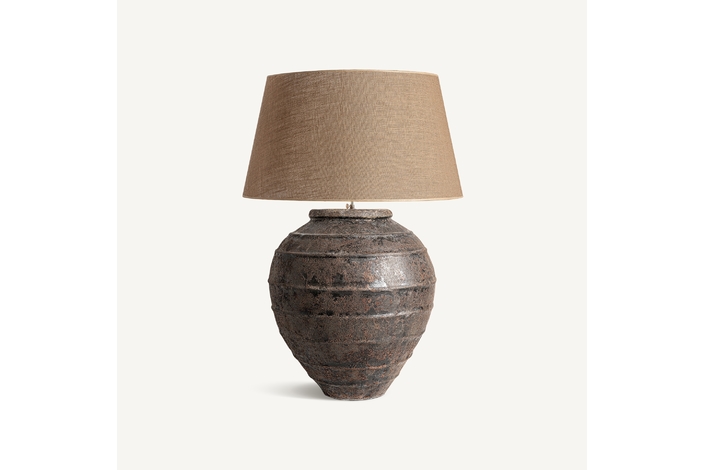Lámpara de sobremesa, en color tonos en marrón envejecido, de estilo vintage. Fabricado en cerámica, combinado con yute.