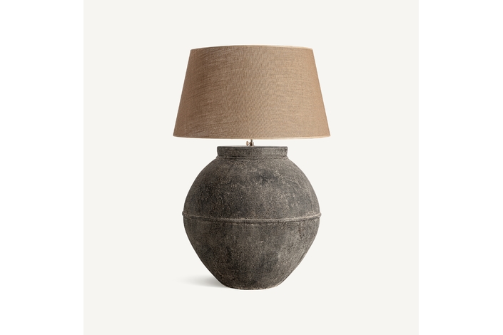 Lámpara de sobremesa. Fabricado en terracota, combinado con yute.