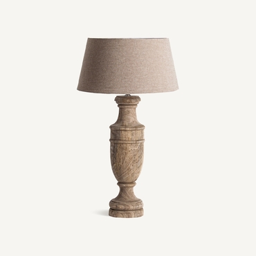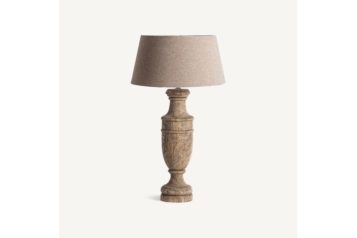Lámpara de sobremesa, en color marrón claro, de estilo clásico. Fabricado en madera de mango, combinado con algodón.