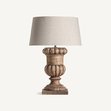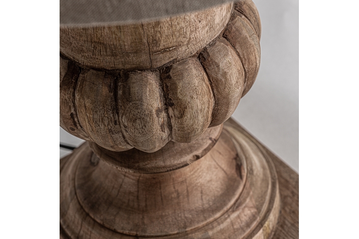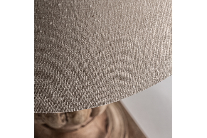 Lámpara de sobremesa, en color marrón, de estilo provenzal. Fabricado en madera de mango, combinado con algodón. Producto desmontable.
