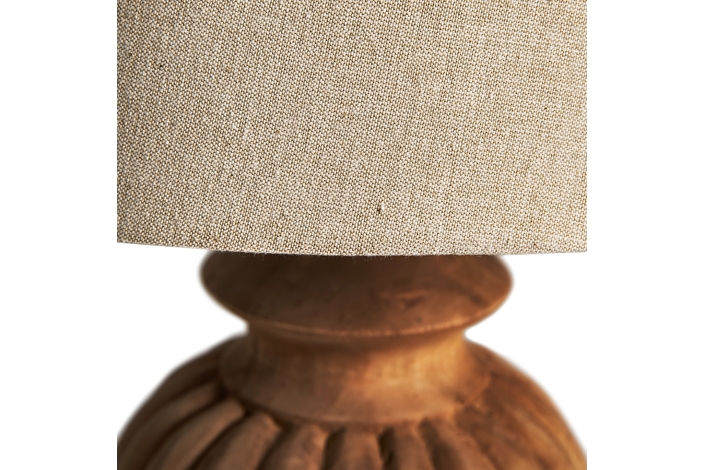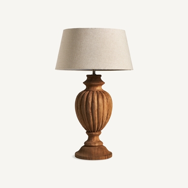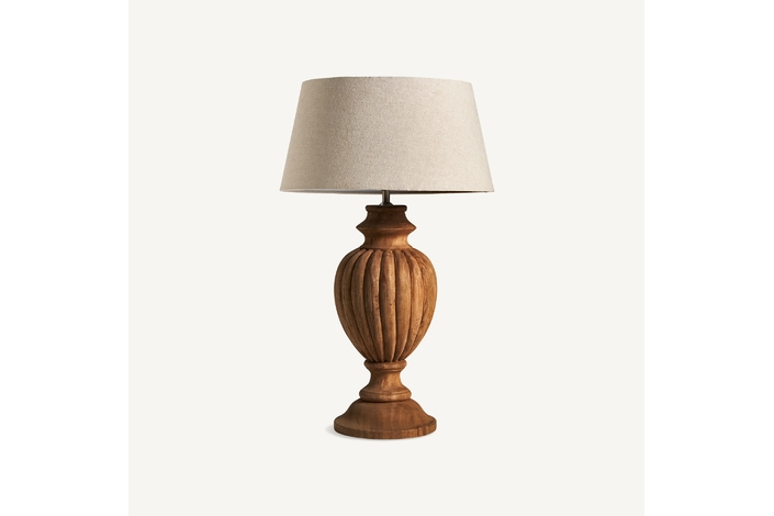 Lámpara de sobremesa, en color marrón decapado, de estilo provenzal. Fabricado en madera de mango, combinado con algodón.