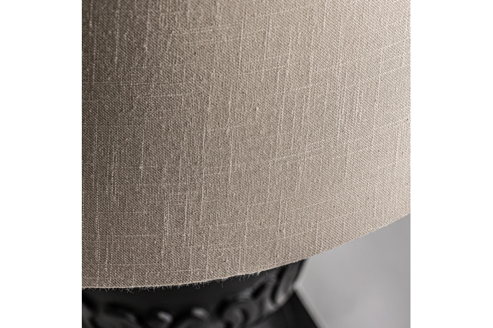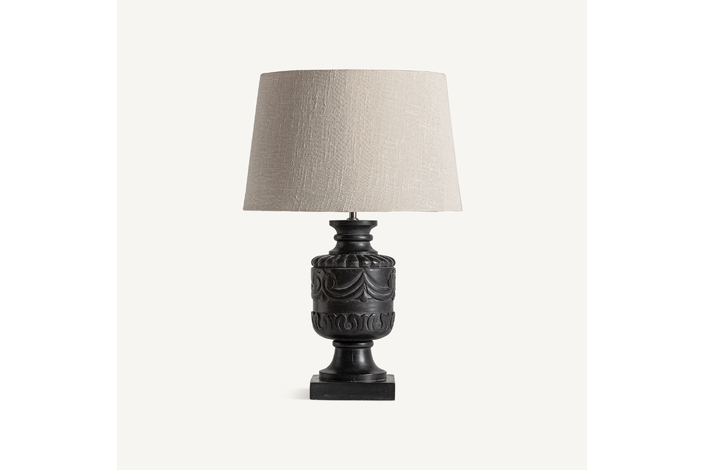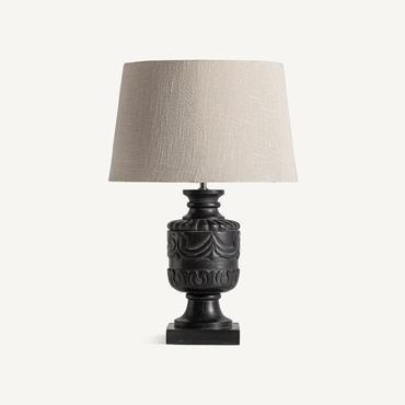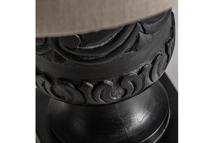 Lámpara de sobremesa, en color negro/blanco, de estilo provenzal. Fabricado en madera de mango, combinado con algodón. Producto desmontable.