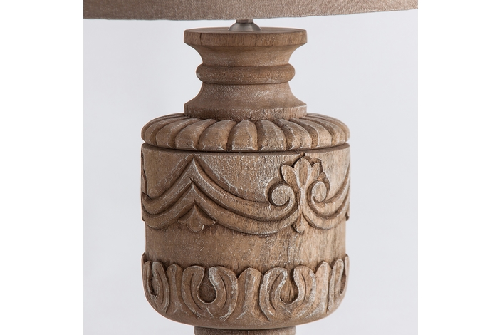 Lámpara de sobremesa, en color marrón/beige, de estilo provenzal. Fabricado en madera de mango, combinado con algodón.