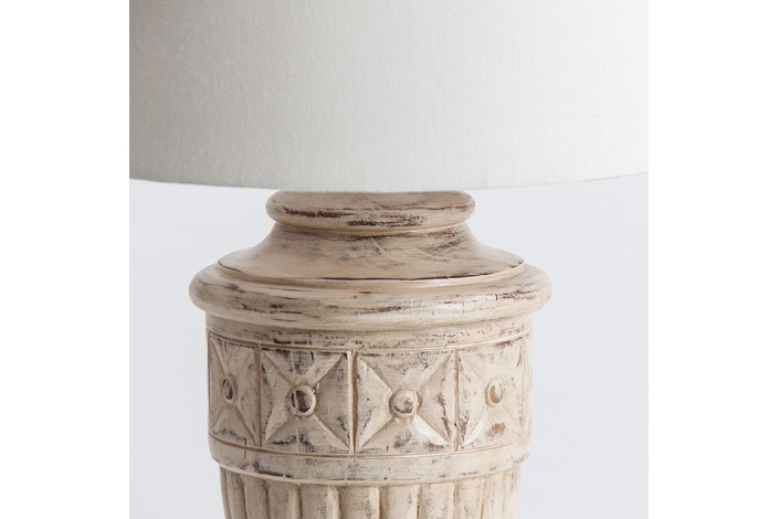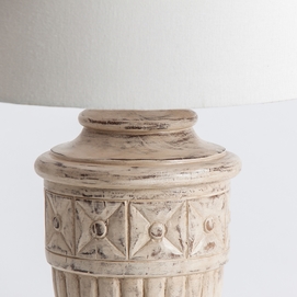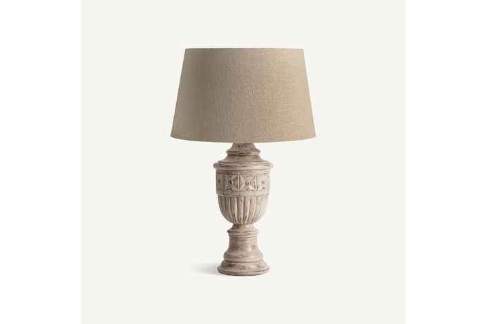 Lámpara de sobremesa, en color natural, de estilo provenzal. Fabricado en madera de mango, combinado con algodón.