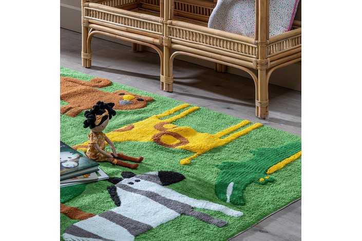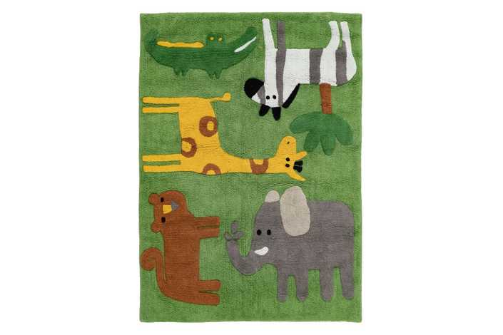 ALFOMBRA ANIMALES VERDE ALGODÓN INFANTIL 135 X 100 CM