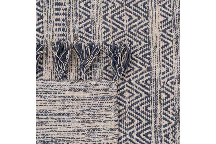 Alfombra tejida a mano. Materiales: 70% algodón - 30% poliéster. Aspirar la alfombra regularmente en potencia baja, sin cepillo fijo o giratorio. Limpiar los derrames de líquido inmediatamente. Para limpiar cualquier mancha, use un paño húmedo sólamente con agua. No use detergente u otro producto de limpieza. No exponer la alfombra directamente al sol o a la humedad. Gire la alfombra de vez en cuando para favorecer un desgaste uniforme. Para almacenar la alfombra, siempre enróllela con la cara hacia fuera, quedando así la superficie de la alfombra encarada al exterior. No enrolle la alfombra con la cara hacia dentro, ni la doble,ya que puede dañarla.