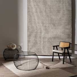 COMPOSICIÓN: 60% LANA - 30% ALGODÓN - 10% PET. GRAMAJE: 1.955GSM No se debe lavar a máquina. No utilizar lejía. No secar en secadora. No planchar. No limpiar en seco. Aspira y rota la alfombra con regularidad. Las alfombras nuevas desprenden pelusa. Es un fenómeno natural. Aspíralas frecuentemente al principio. Manchas secas: elimínalas inmediatamente frotando cuidadosamente hacia el centro de la mancha. Manchas húmedas: no frotes. Absórbelas con papel hogar; humedécelas con un paño y un limpiador suave. Limpieza profesional de la alfombra, cuando sea necesario. Cuando aspires la alfombra para limpiarla, utiliza siempre el accesorio estándar para suelos, nunca el cepillo rotatorio.