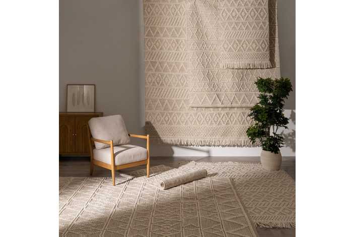 COMPOSICIÓN: 60% LANA - 30% ALGODÓN - 10% PET. GRAMAJE: 1.980GSM No se debe lavar a máquina. No utilizar lejía. No secar en secadora. No planchar. No limpiar en seco. Aspira y rota la alfombra con regularidad. Las alfombras nuevas desprenden pelusa. Es un fenómeno natural. Aspíralas frecuentemente al principio. Manchas secas: elimínalas inmediatamente frotando cuidadosamente hacia el centro de la mancha. Manchas húmedas: no frotes. Absórbelas con papel hogar; humedécelas con un paño y un limpiador suave. Limpieza profesional de la alfombra, cuando sea necesario. Cuando aspires la alfombra para limpiarla, utiliza siempre el accesorio estándar para suelos, nunca el cepillo rotatorio.