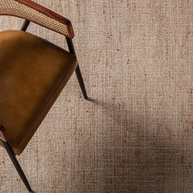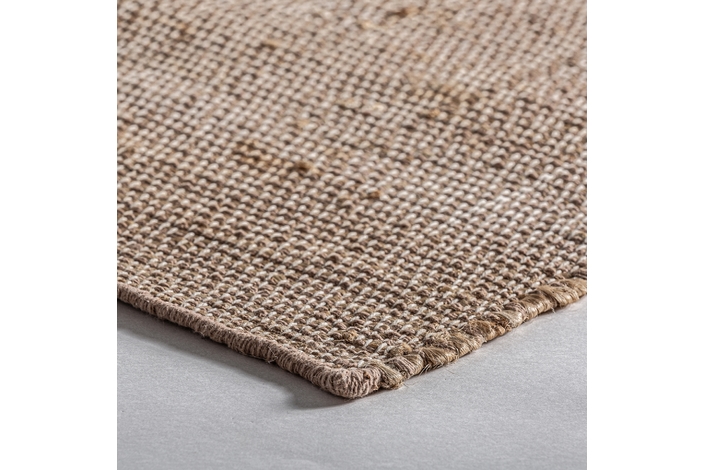 Alfombra jiona, en color tonos en marrón, de estilo boho. Fabricado en yute, combinado con algodón.
