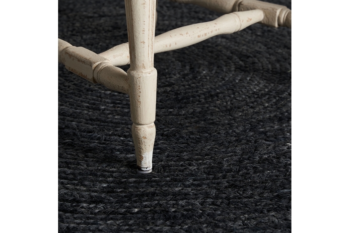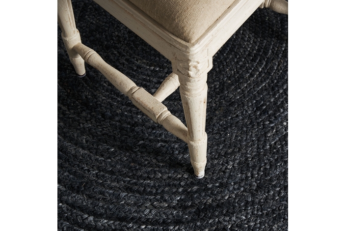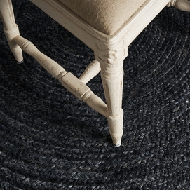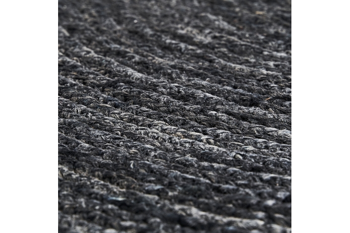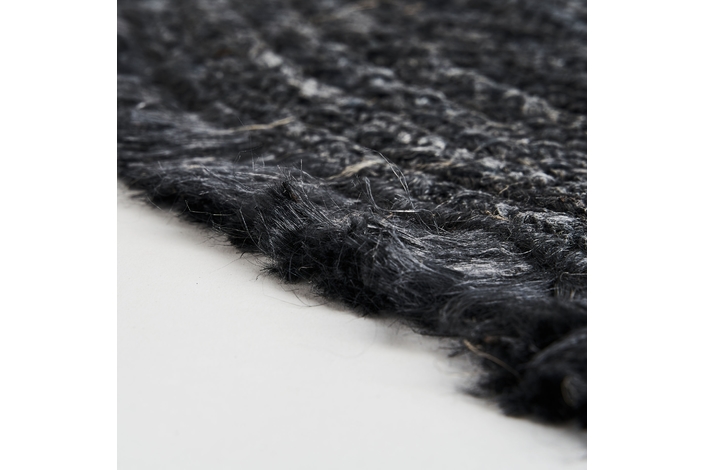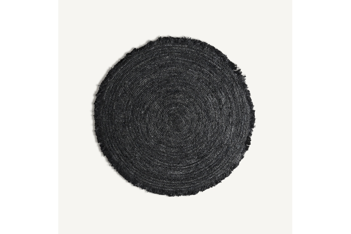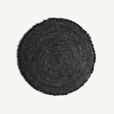 Alfombra redonda kisai, en color negra teñido, de estilo contemporáneo. Fabricado en yute.