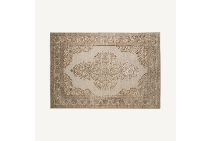 Alfombra laia, de estilo clásico. Fabricado en viscosa, en color tonos claros.