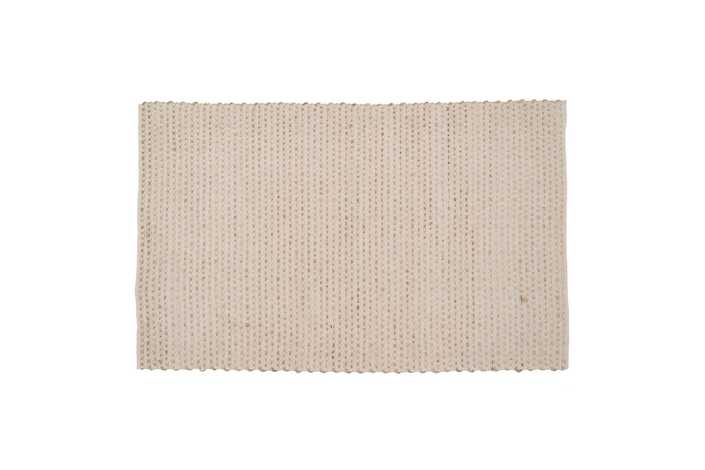 Material: 70% algodón - 30% yute. No se debe lavar a máquina. No utilizar lejía. No secar en secadora. No planchar. No limpiar en seco. Aspira y rota la alfombra con regularidad. Las alfombras nuevas desprenden pelusa. Es un fenómeno natural. Aspíralas frecuentemente al principio. Manchas secas: elimínalas inmediatamente frotando cuidadosamente hacia el centro de la mancha. Manchas húmedas: no frotes. Absórbelas con papel hogar; humedécelas con un paño y un limpiador suave. Limpieza profesionalde la alfombra, cuando sea necesario. Cuando aspires la alfombra para limpiarla, utiliza siempre el accesorio estándar para suelos, nunca el cepillo rotatorio.