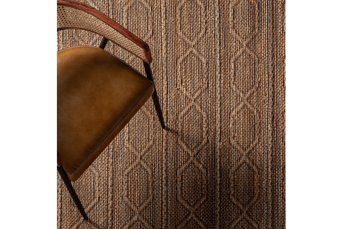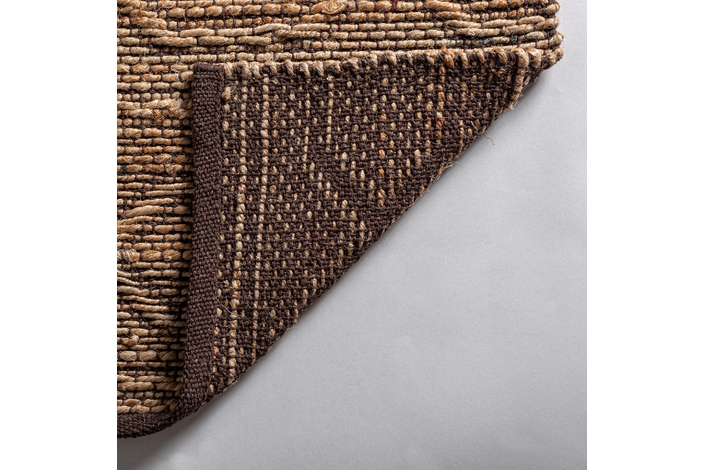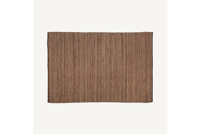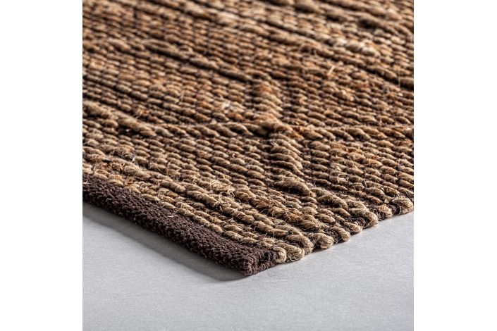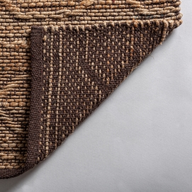 Alfombra tudia, en color tonos en marrón, de estilo clásico. Fabricado en yute, combinado con algodón.