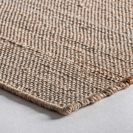 Alfombra zalika, en color tonos en marrón, de estilo boho. Fabricado en yute, combinado con algodón.