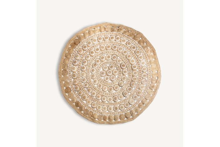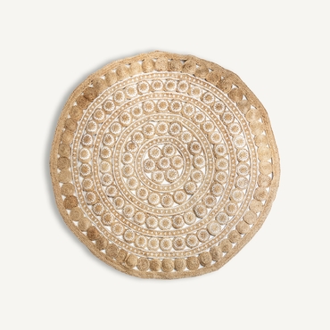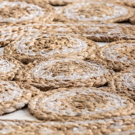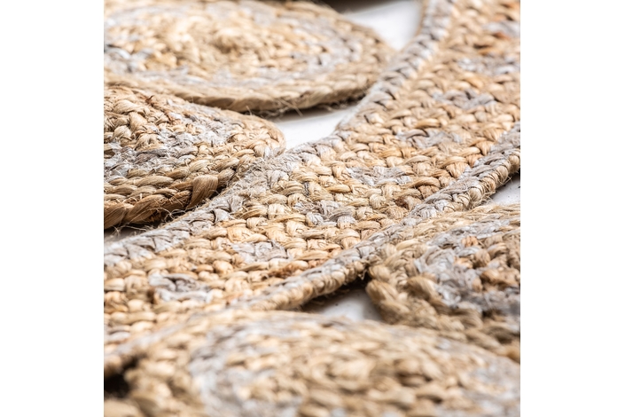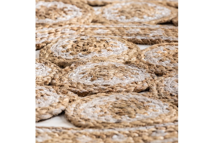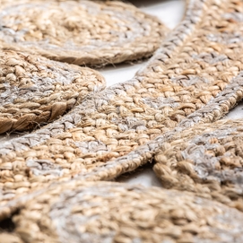La alfombra Zulai con 240cm de diámetro presenta un diseño circular elaborado con fibras 100% naturales, yute y cáñamo. Estos dos últimos materiales se combinan trenzándose a mano y mostrando el carácter más artesanal de la pieza. Esta alfombra es un elemento perfecto para todo tipo de interiores en los que se quiera ambientar un espacio con un toque natural y calmado.